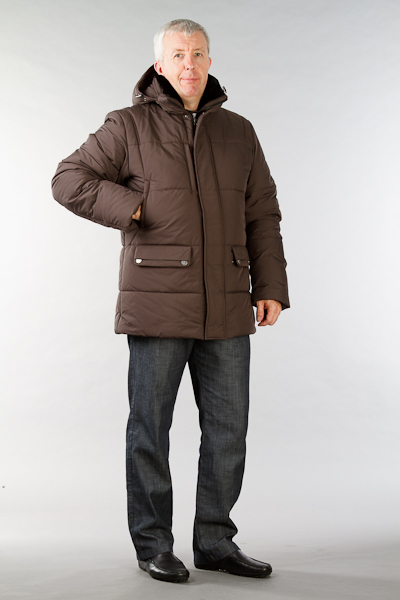 Мужская зимняя куртка прямого силуэта на утеплителе "файбертек" с пристегивающимся капюшоном. Застежка на молнию и кнопки на планке . Воротник - стойка.Нагрудные карманы-листочки, нижние накладные карманы с клапаном. Внутренний карман на молнии.